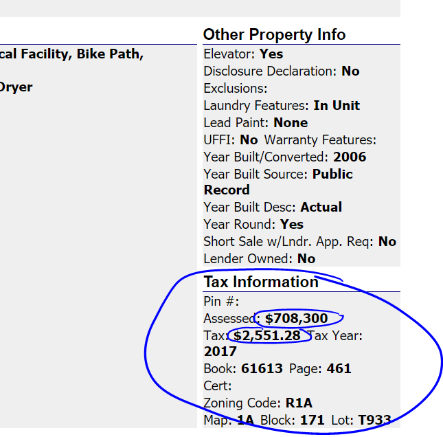 Before we get to my Wayland example below, here's a screenshot of how to read the property tax on MLS. It's generally on the first page of the MLS listing sheet, near the middle right. See below: