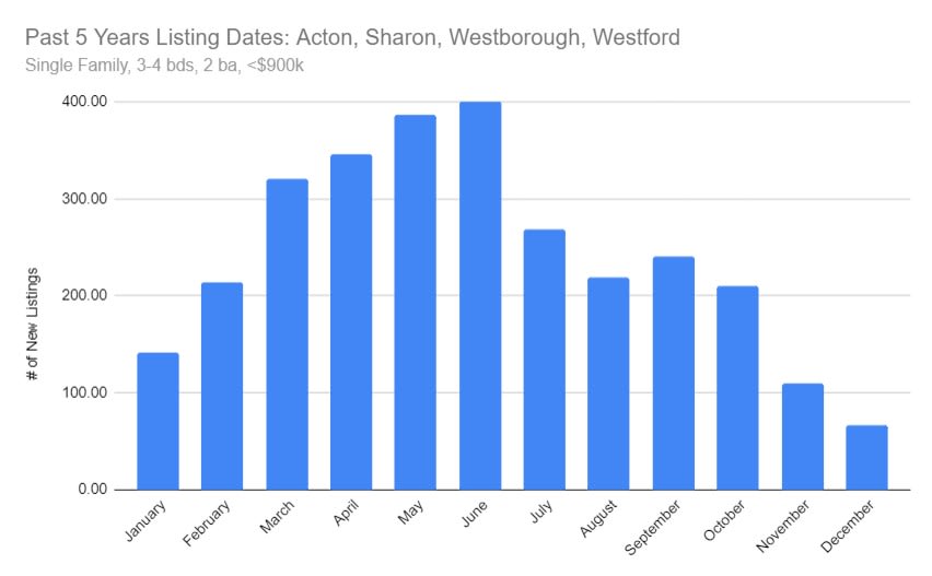 Spring market is just around the corner! Traditionally, we see the highest inventory levels from April through June. This dynamic is considered to be due to the thawing winter on the front end, and schools starting up on the back end. For example, it’s not ideal to show houses with snow covered grounds and unsafe driving conditions. Also, you tend to get fewer parties attending open houses. Meanwhile in the summer, once you’re into July, a buyer is unlikely to be able to move into their new house and settle down before the start of their children’s school in September. That said, we do usually see a bump in inventory in September and October. I consider the Spring the “last chance” market where a seller needs to sell-- a common scenario is the seller wasn’t able to find a buyer in the Fall and is now stuck finding a buyer in the Spring market. In this market, you’re basically removing the buyer pool with school-aged children, since no one wants to switch their kids’ schools mid-semester.