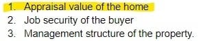Finance contingency, also known as a mortgage contingency, is comprised of three main issues to consider when looking at how the bank determines whether a home purchase is financeable or not: